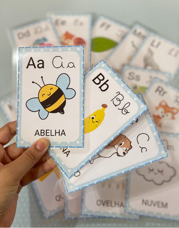 Os Cards do Alfabeto são um excelente recurso para trabalhar o Princípio Alfabético de forma atrativa e prazerosa, com os quatro tipos de letra e a possibilidadede transforma-lo em um chaveirodo Alfabeto.