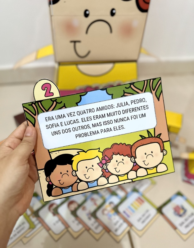 Kit de contação de história e dinâmica de apresentação para primeiro dia de aula. Essa proposta trabalha identidade e respeito às diferenças, e também é uma excelente oportunidade para as crianças se apresentarem para os colegas e para a professora.