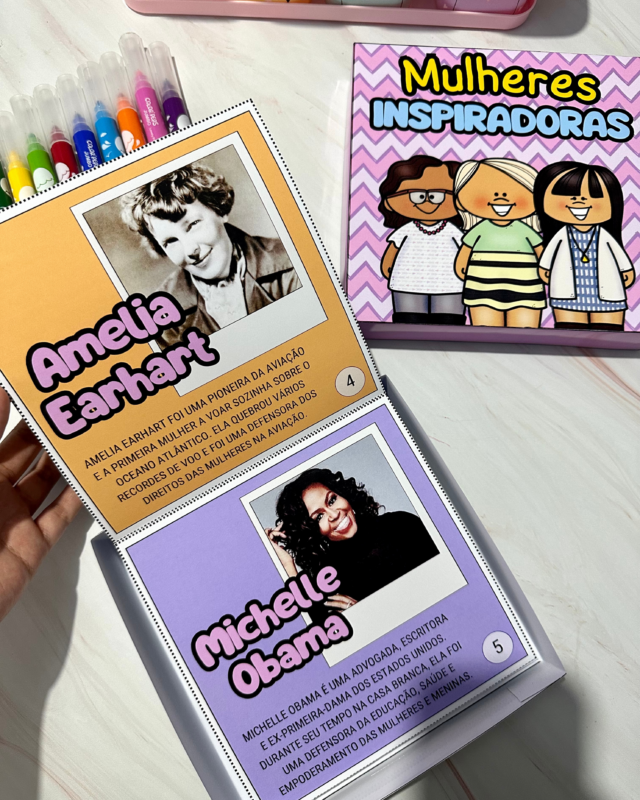 Esse material vai em formato de caixa e inclui a história de mulheres que foram importantes no Brasil e no mundo, e que se tornaram fonte de inspiração e admiração.