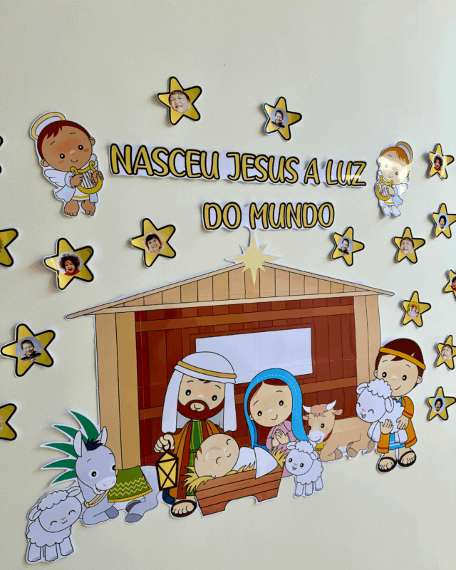 Painel de Natal com Presépio para trabalhar o tema com crianças da Educação Infantil e séries iniciais do Ensino Fundamental.