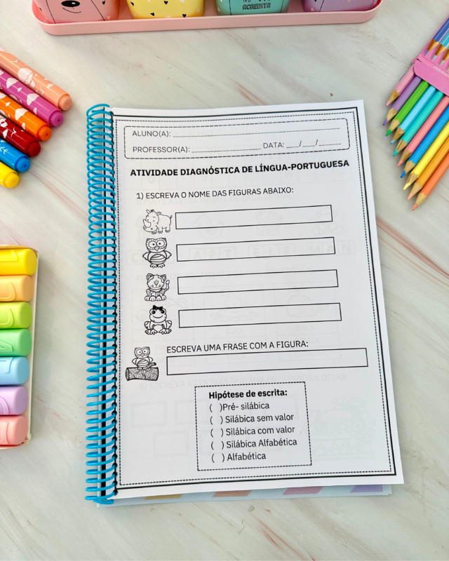Arquivo para realização de Sondagem Diagnóstica com crianças do primeiro ano do Ensino Fundamental. O arquivo vai em PDF pronto para impressão, e inclui 12 páginas de atividades que envolvem habilidades das áreas de Língua Portuguesa, Matemática, Ciências, História e Geografia.