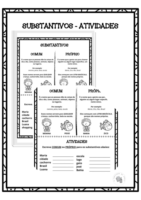 Um material desenvolvido para trabalhar com substantivos comuns e próprios de forma simples, leve e prática.